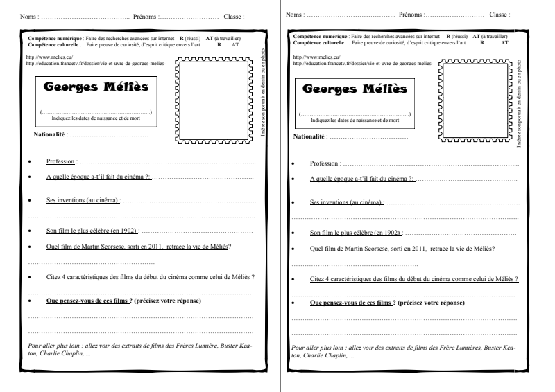Joue Le Comme Méliès Fiche Élève