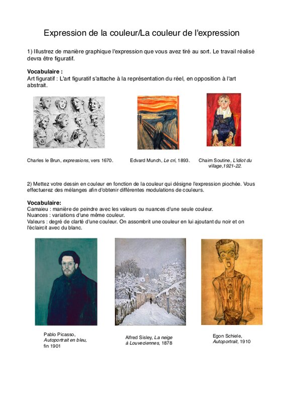 Couleur Expression Fiche ÉLèVe