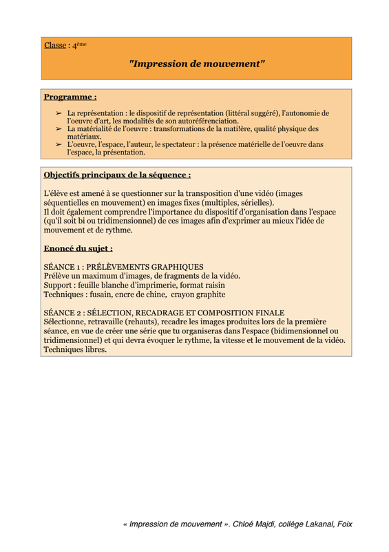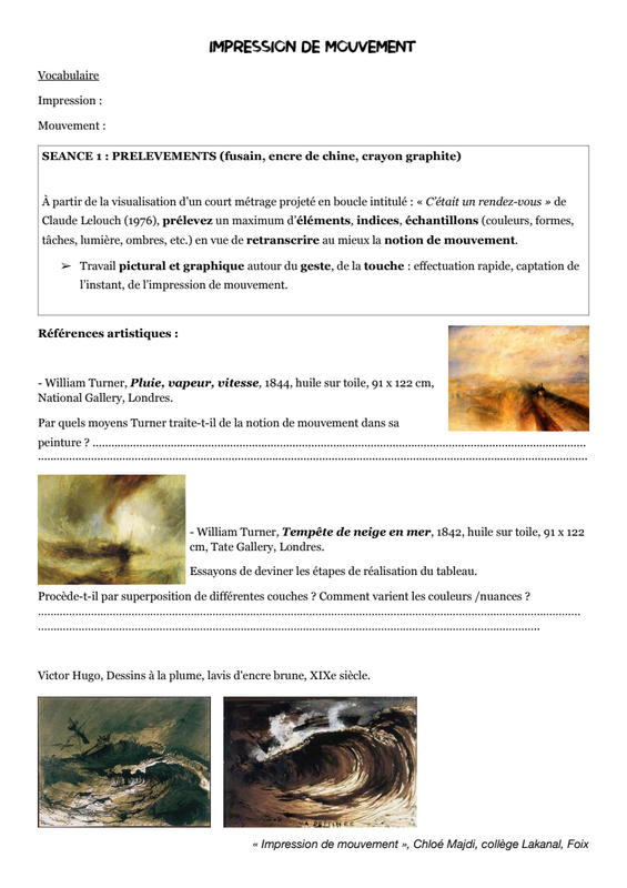 Impression De Mouvement Fiche Élève